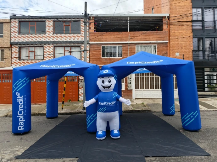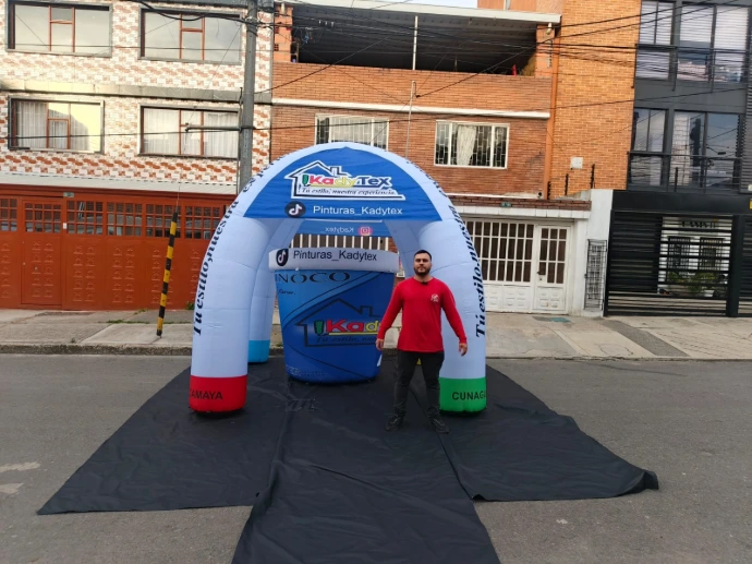 Olvídate de estructuras pesadas y montajes complicados. Nuestras carpas publicitarias inflables son la solución más rápida, moderna y efectiva para destacar en cualquier evento. En menos de 5 minutos tendrás un espacio robusto y llamativo listo para usar. Fabricadas con materiales de alta resistencia y tecnología de impresión HD, cada cara de la carpa se convierte en un impactante lienzo publicitario que no pasa desapercibido.