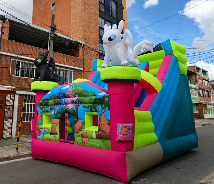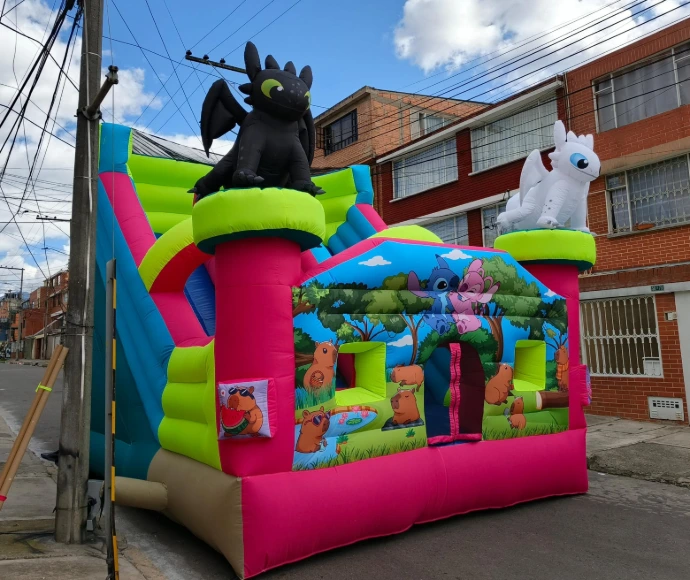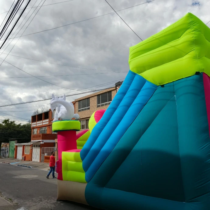 Haz que tu evento suba de nivel con nuestro tobogán inflable de colores intensos e impresión full HD. No es solo un juego, es un espectáculo visual que atrae miradas y garantiza horas de diversión.